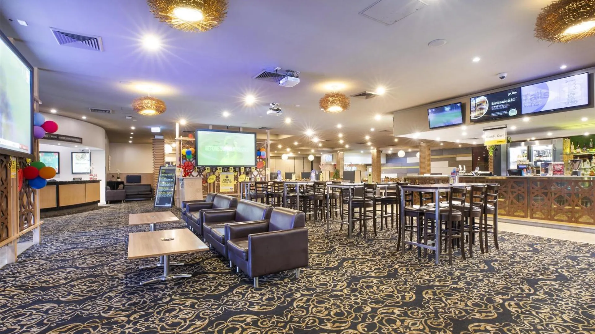 Catch live games on big-screen TVs in the bar, featuring FOX Sports and TAB facilities.