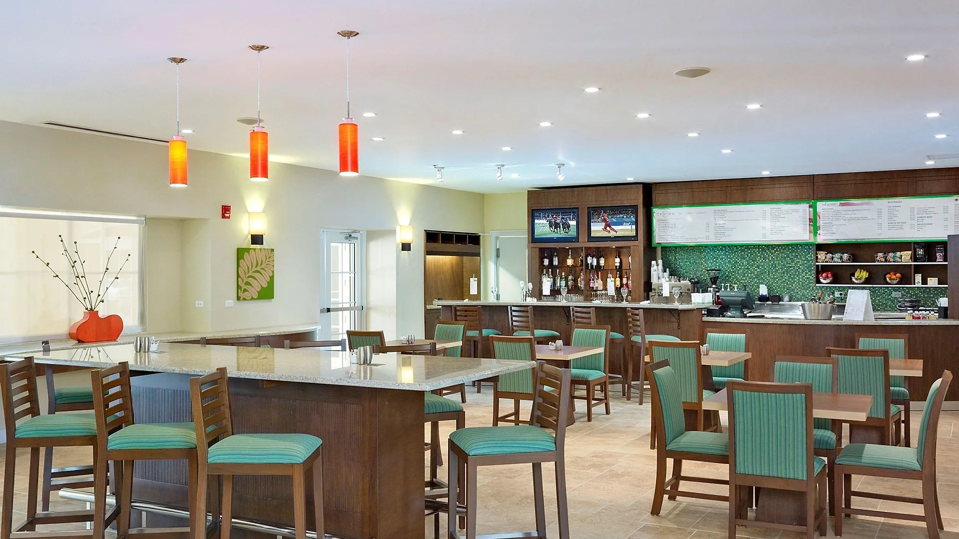 Sample international dishes at Centro, the on-site restaurant with a bar.