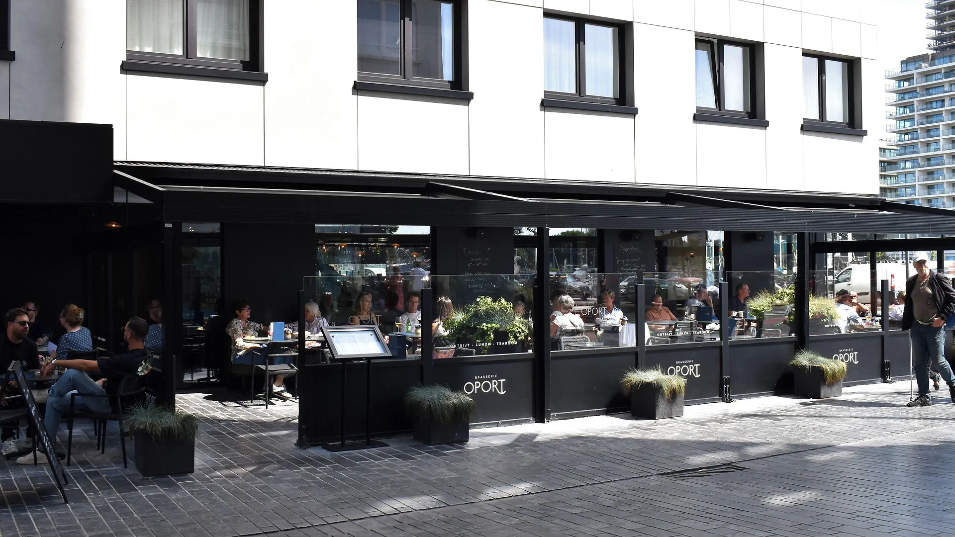 Enjoy a meal at Brasserie Oport, which serves dishes made with fresh ingredients and overlooks Ostend's marina.