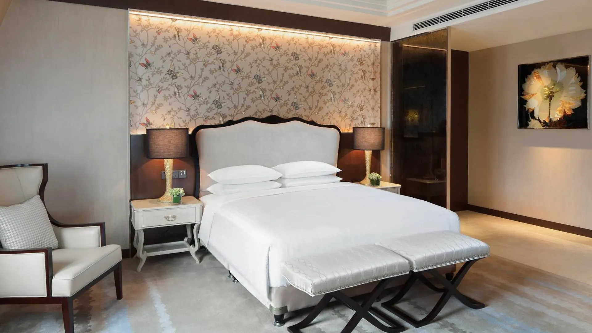 The Shanghai hotel features 221 rooms with a flat-screen TV with satellite channels, as well as a mini-fridge-bar. Furnished with a writing table and a cabinet, they also have soundproof windows. Offering such amenities as a hair dryer and bath sheets, the bathrooms also include a roll-in shower and a separate toilet. Certain rooms include exquisite views of the garden.