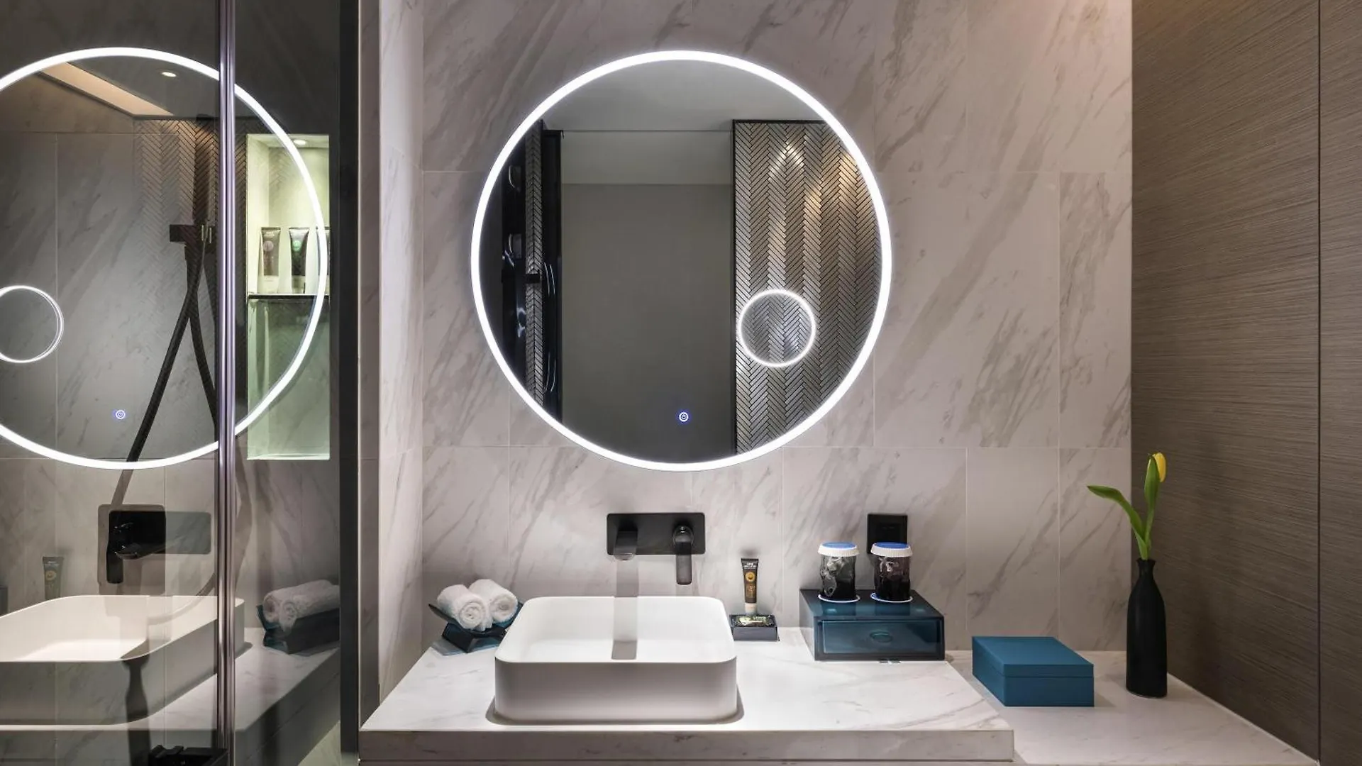 The rooms at the accommodation include air conditioning. Some of them comprise a balcony and a dressing area, furnished with a writing table. In-room entertainment includes a multi-channel television, the rooms also have a mini bar fridge and coffee/tea making equipment for self-catering. The bathroom is equipped with a walk-in shower and a separate toilet, along with hair dryers and shower caps.