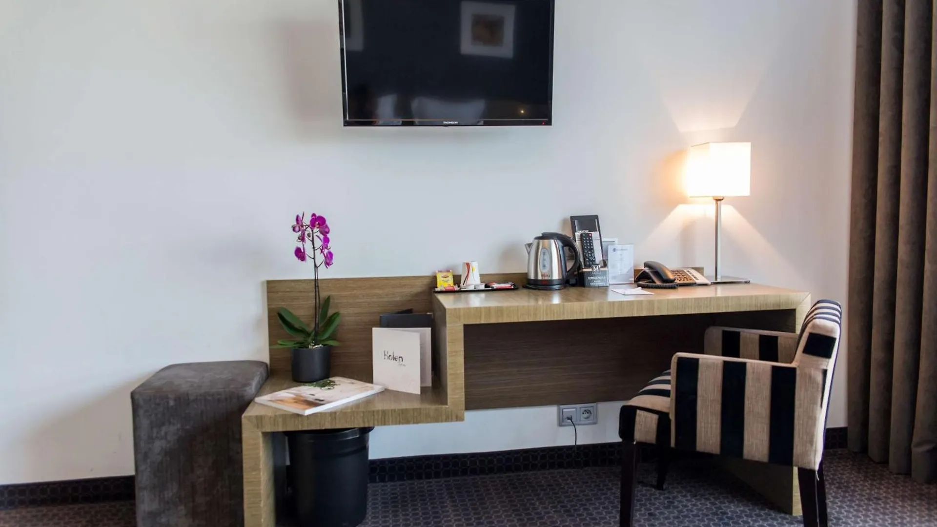 Furnished with a writing desk, the 60 rooms also include such conveniences as a flat-screen TV with satellite channels, along with coffee and tea makers. A separate toilet and a shower are offered in elegant bathrooms along with hair dryers and bath sheets. Some rooms look out over the pool.