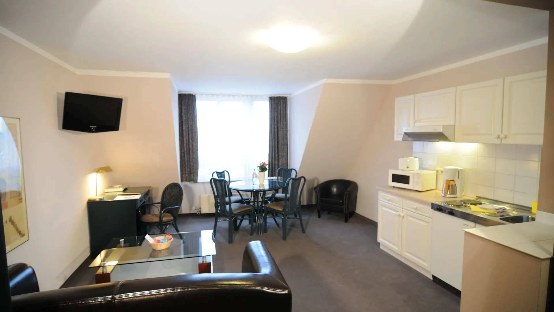 Modern amenities in the allergy-free rooms include a flat-screen TV with satellite channels along with a mini-fridge-bar. The rooms at City Hotel have a modern-style interior.