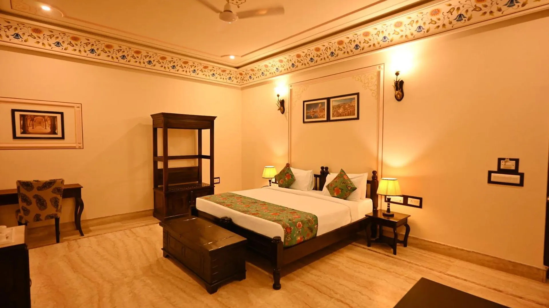 Las habitaciones del Shergarh disponen de un balcón y una zona de estar, además de servicio de planchado y climatizador para tu comodidad. Para tu comodidad, encontrarás inodoro separado y ducha, además de secador de pelo y toallas.