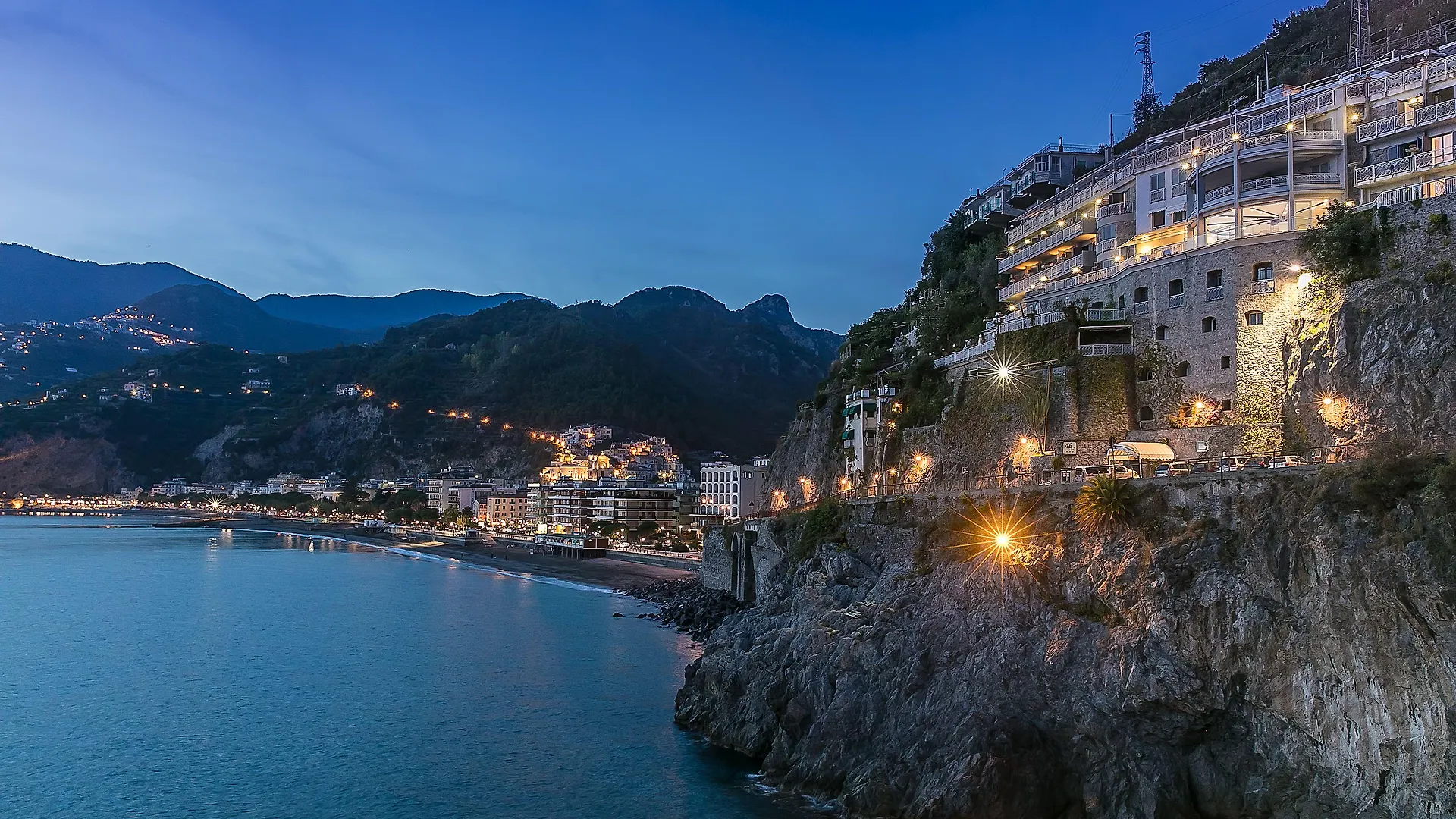 Situated about 20 minutes' walk from Reginna Major, the 4-star Hotel Club Due Torri Maiori offers rooms with views of the ocean. Located a mere 300 feet from Torre Normanna and within reach of Parrocchia di Santa Maria a Mare, the hotel features chaise longues, a shared lounge, and various recreational opportunities.