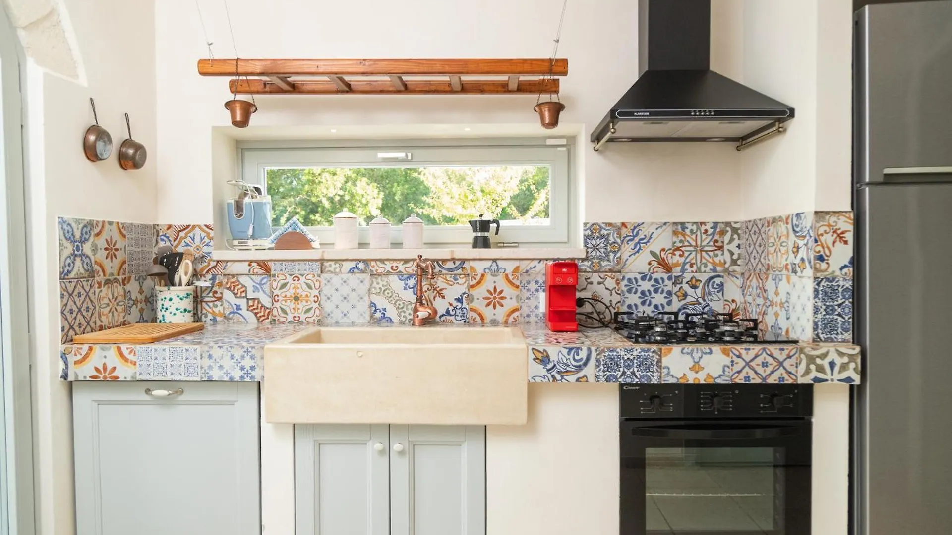 Guests can dine in a full kitchen, as well as an outdoor dining area, provided at the Ostuni property. Guests can also make use of an electric kettle, coffee and tea making equipment, and a kitchenware to prepare their own meal.