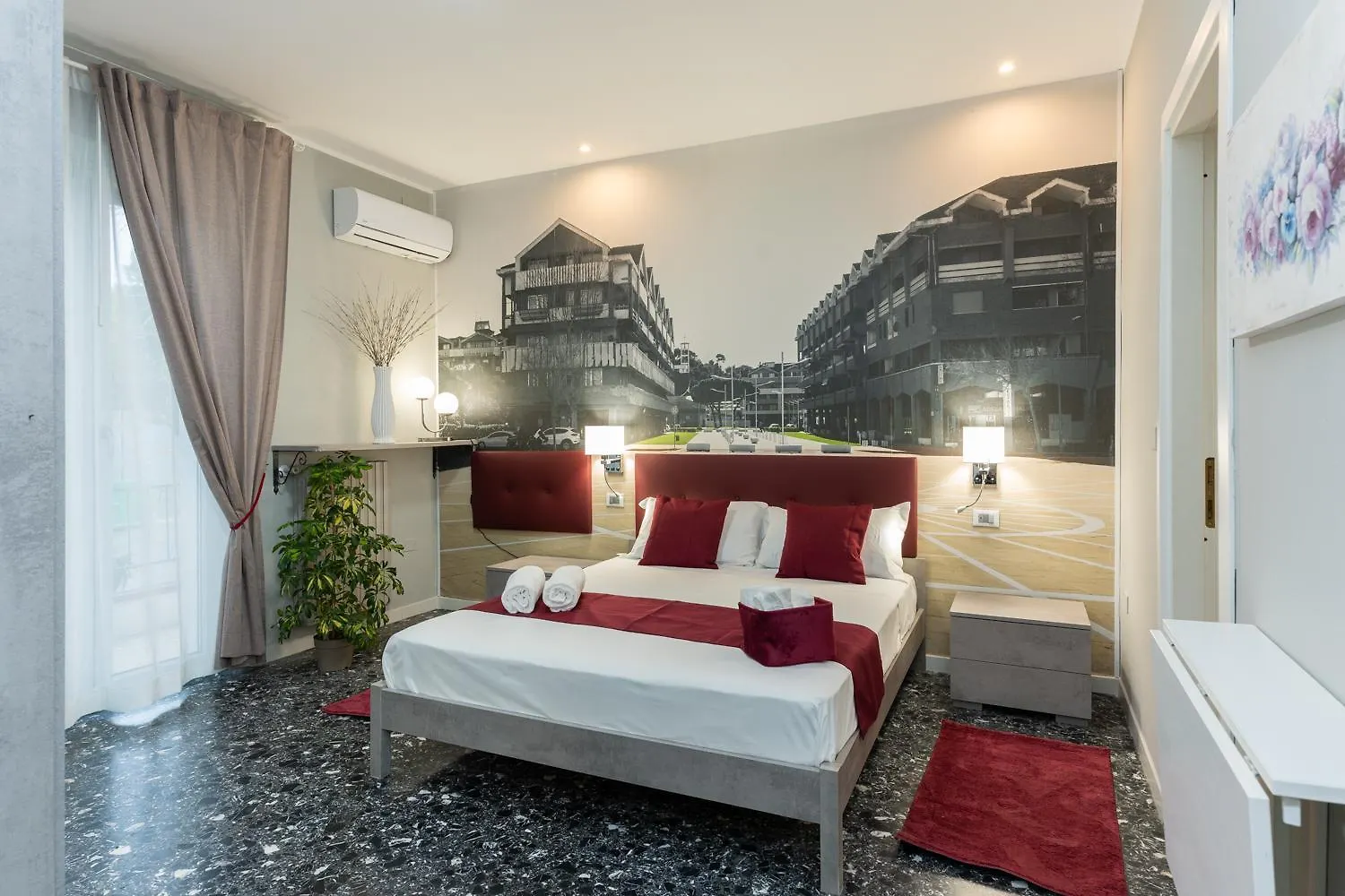 The hotel offers rooms with a dressing room featuring air conditioning, along with a flat-screen TV with satellite channels. Bathrooms feature a bidet, a separate toilet, and a shower, along with comforts such as hair dryers and bath sheets.