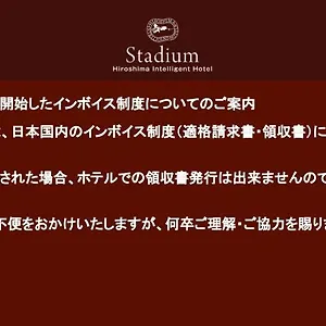 Hiroshima Intelligent Hotel Stadium Mae is near Hiroshima Peace Memorial Park, Mazda Zoom-Zoom Stadium, and Hiroshima Danbara Shopping Centre.