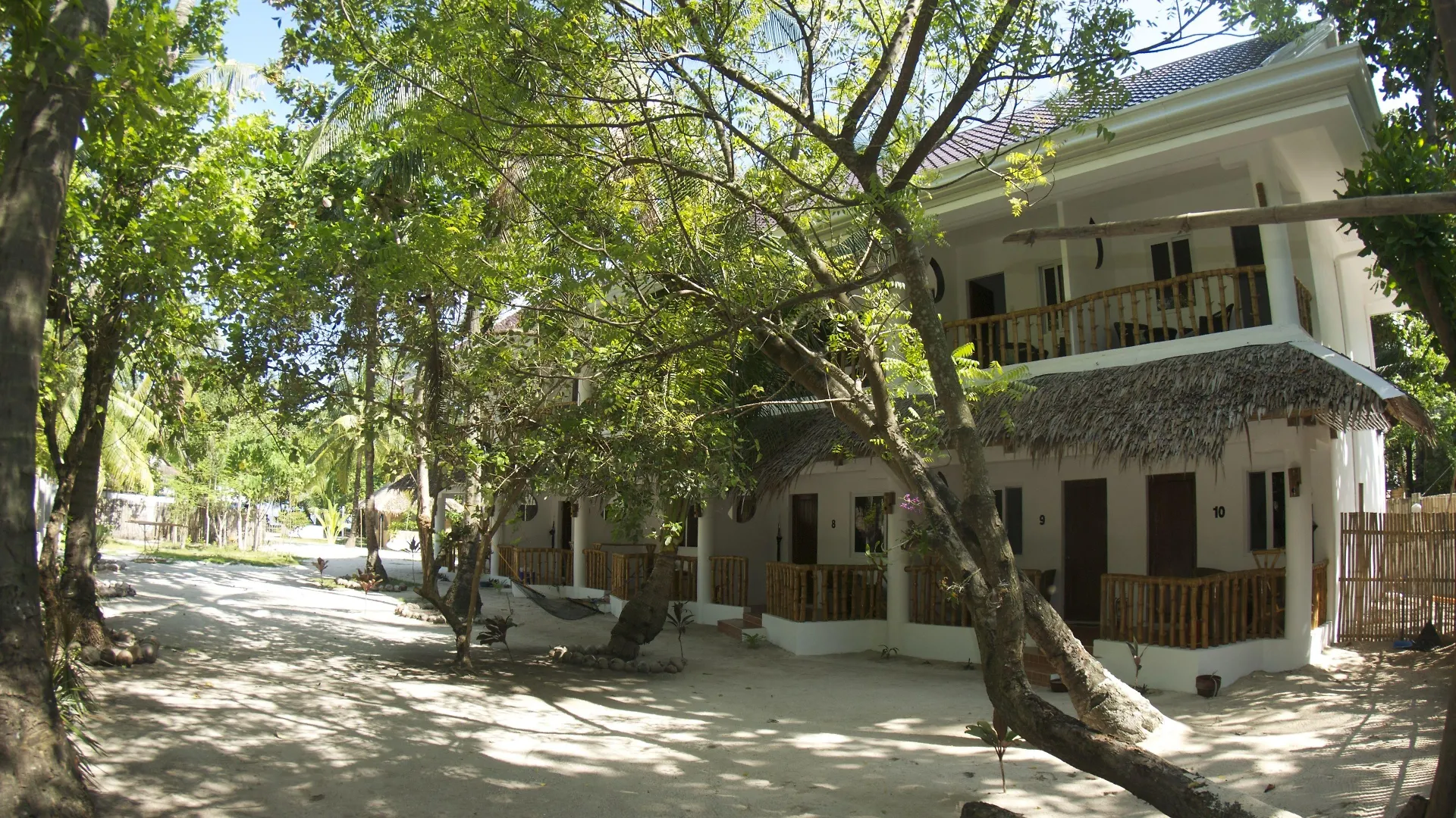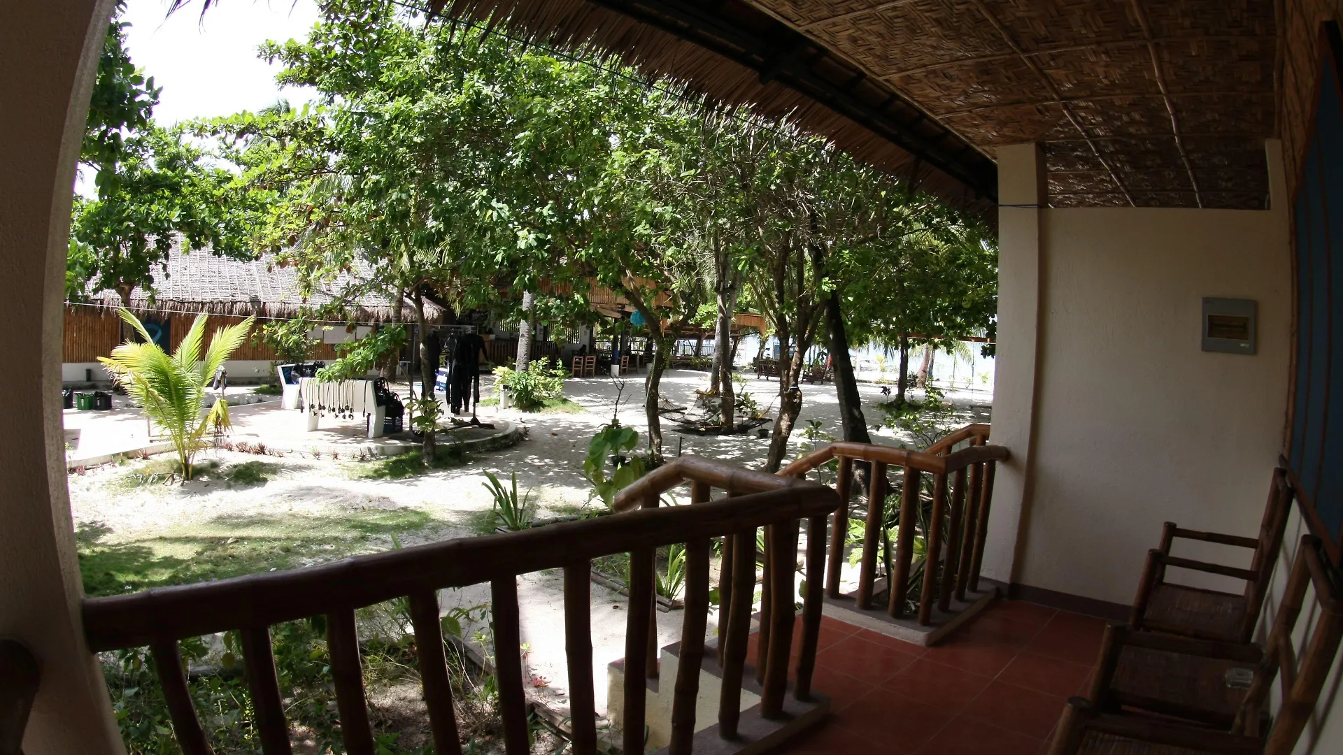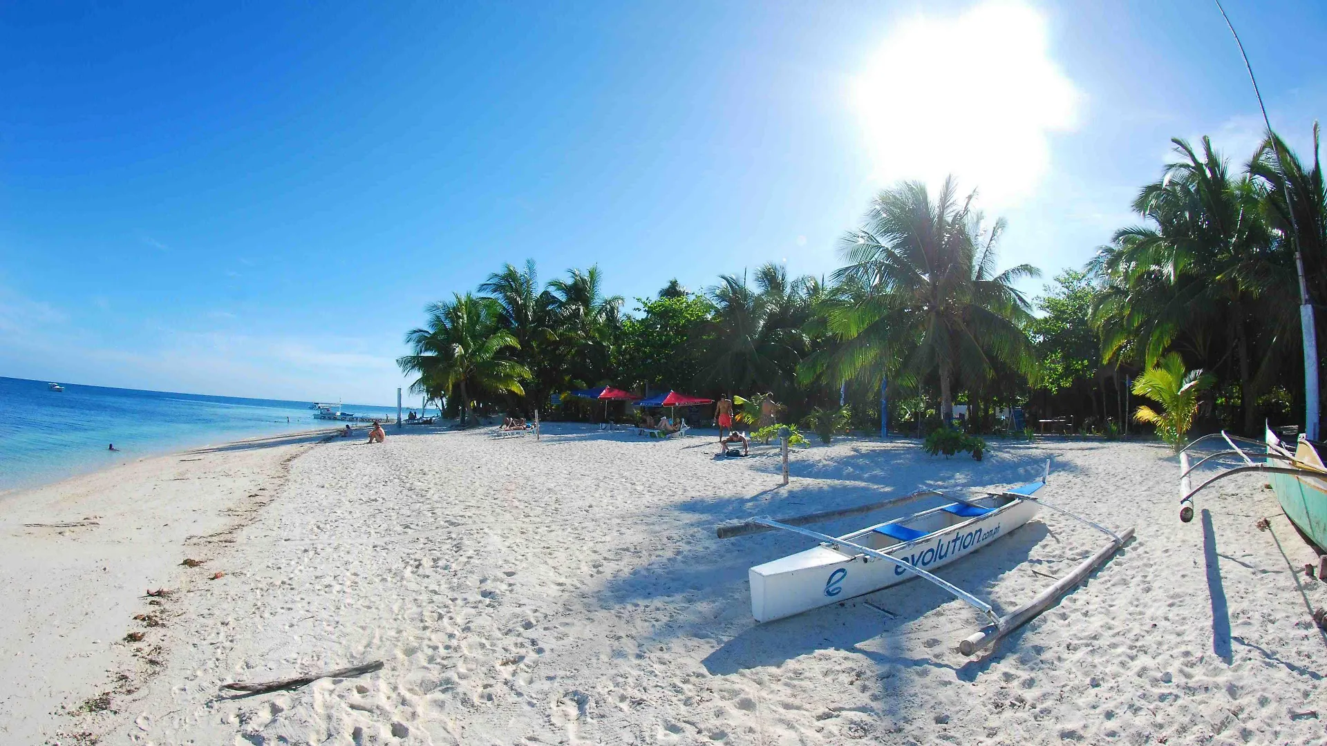 Beach facilities at the Evolution Dive And Beach Resort Logon include beach umbrellas.