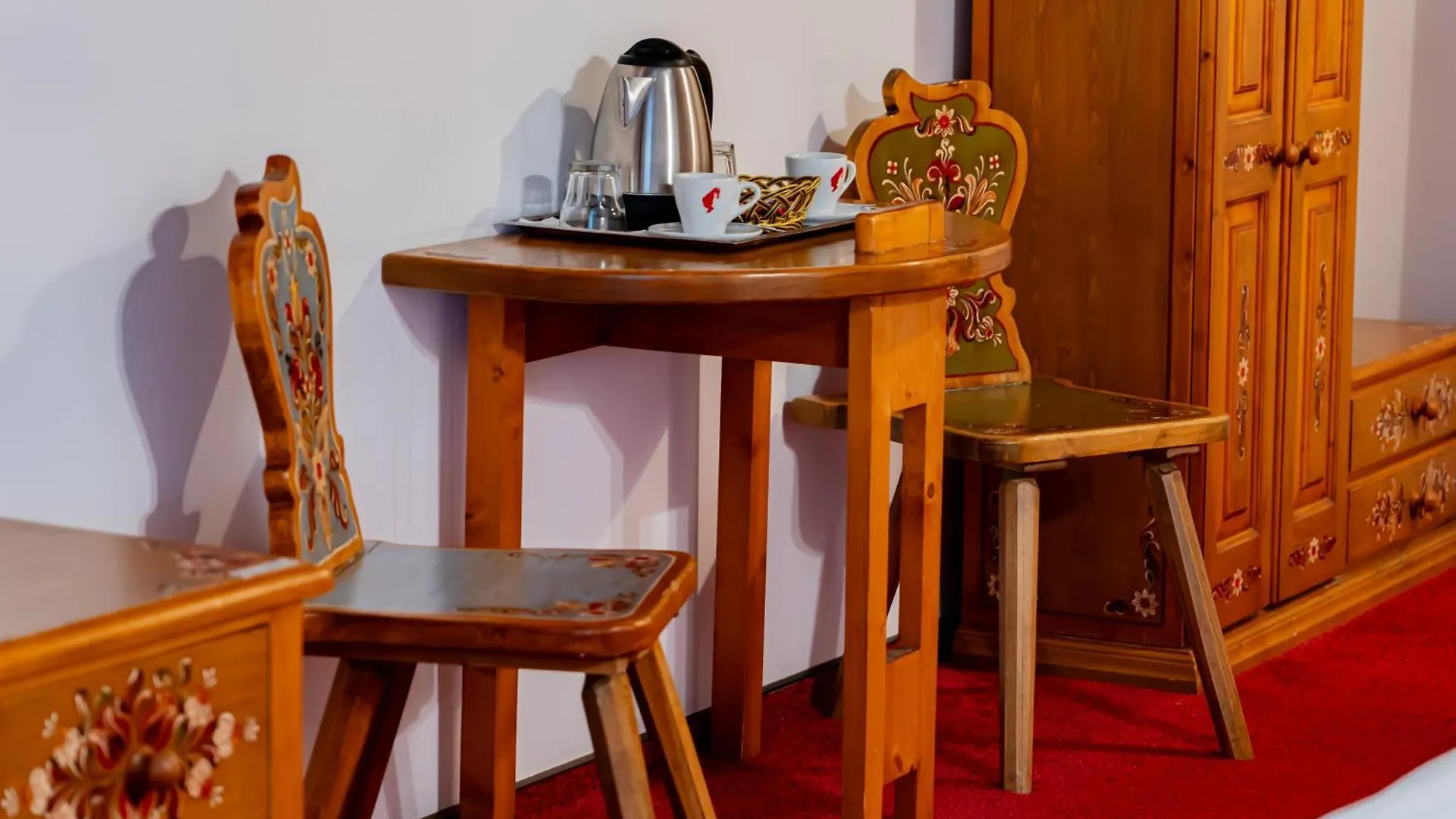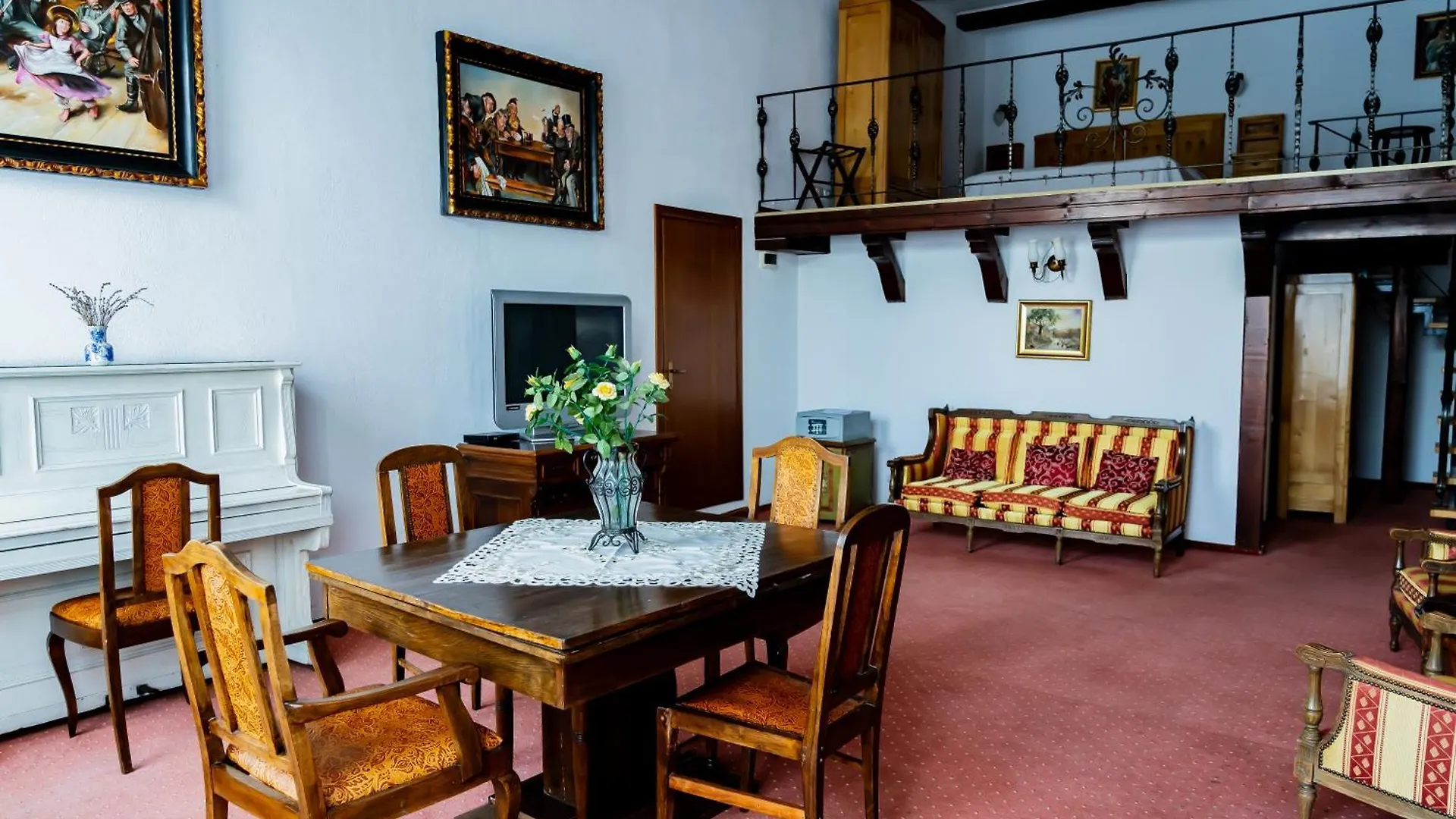 Medgyes városi Traube 15 szobával rendelkezik, melyek étkezővel, íróasztallal berendezettek. A mini hűtőszekrénybár, tea- és kávéfőző berendezés mellett olyan nélkülözhetetlen dolgok is rendelkezésre állnak, mint a klímaberendezés. A külön WC-vel és zuhanyzóval ellátott fürdőszobák hajszárítót és törölközőket is kínálnak.