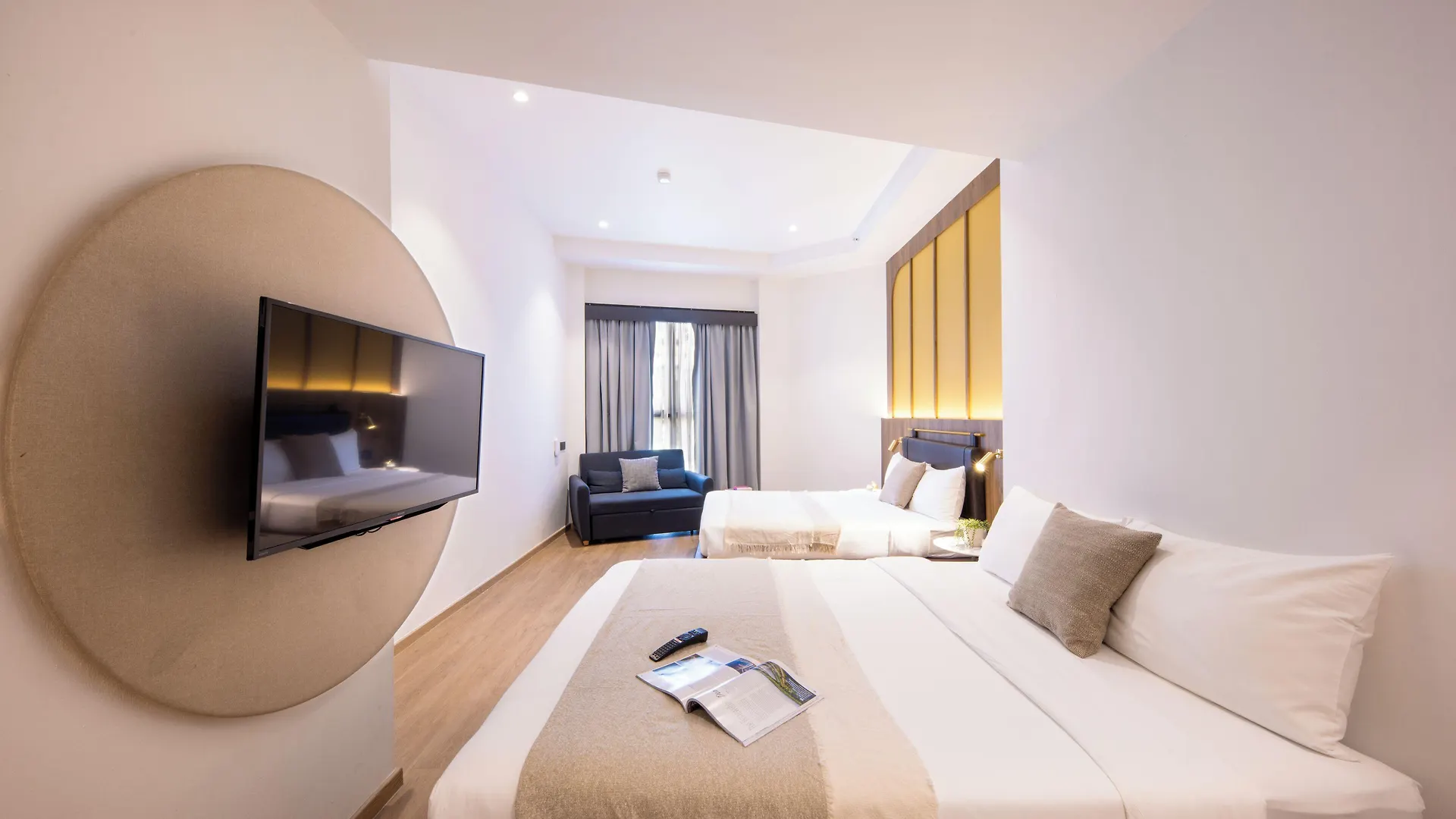 The rooms include an air conditioner, along with such modern comforts as a flat-screen TV with satellite channels. Along with coffee/tea making facilities, the rooms are furnished with a writing table. Bathrooms, fitted with a bidet, a separate toilet, and a shower, also provide guests with hair dryers and towels.