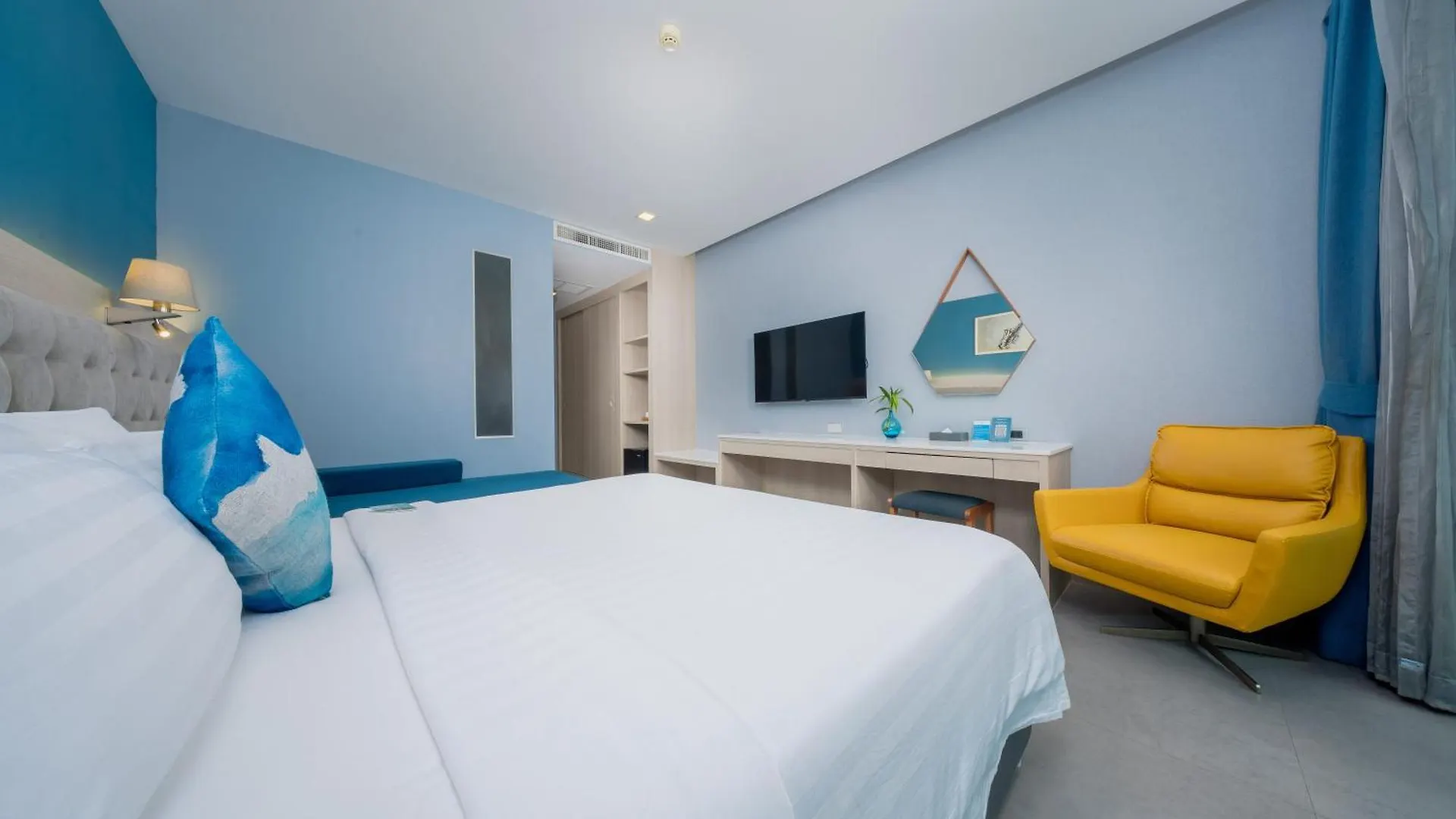 The spacious rooms in Bluesotel Krabi Aonang Beach hotel have a flat-screen TV with satellite channels along with an air conditioner. The private bathrooms include a bidet, a separate toilet, and a shower, along with such comforts as shower caps and bath sheets. Also, these spacious rooms look onto the pool.