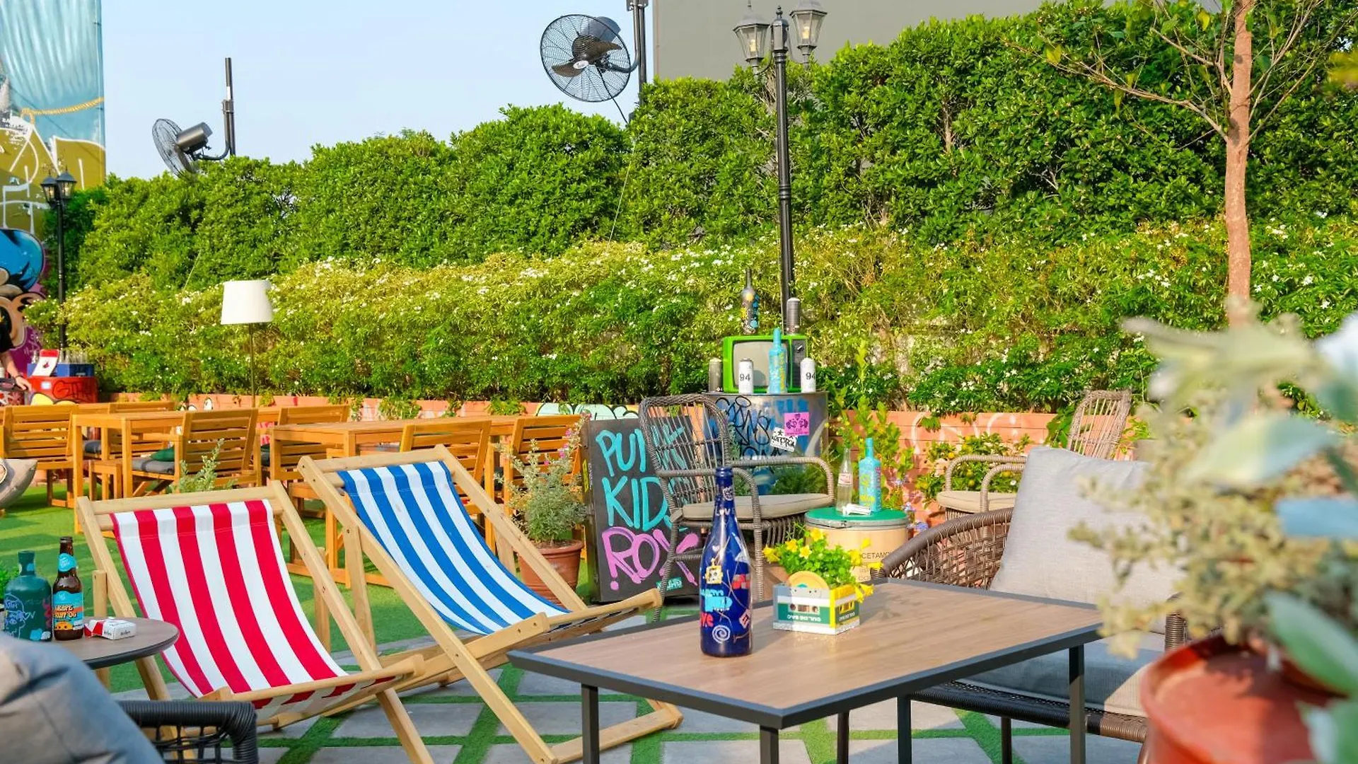 Eat American comfort food at Cul de Sac rooftop. It has a poolside setting and pet-friendly options.