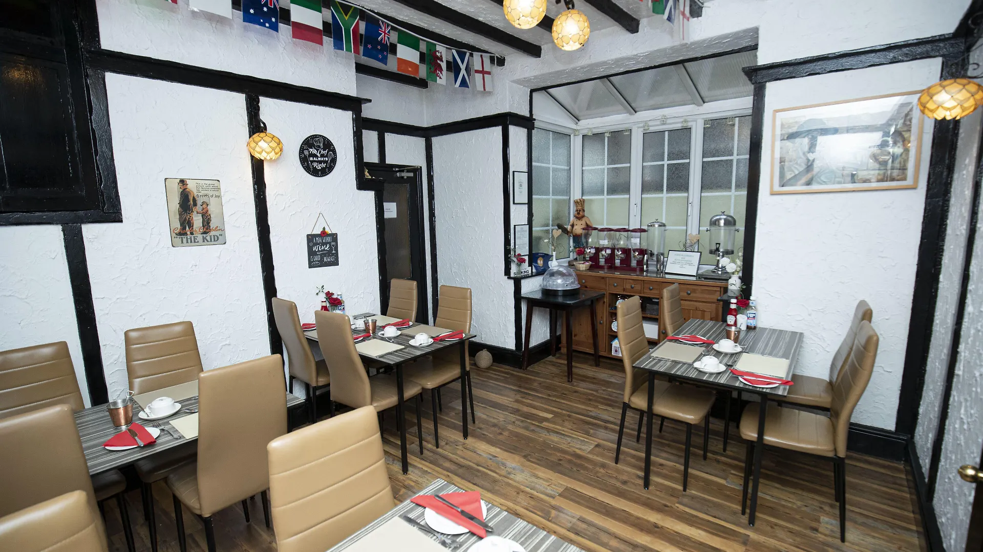 Auberge Brasserie, Guelder Rose, and Trattoria 51 serve French, British, and Italian cuisines.