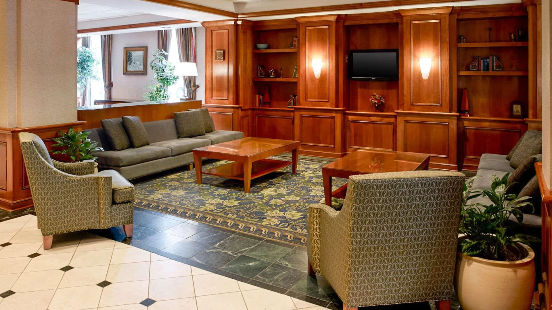 This hotel invites guests to the lounge bar to relax with a drink. Guests can dine at Dunkin' Donuts just moments from the hotel.