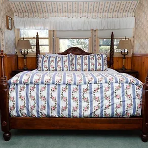 Sit on the wrap-around veranda surrounded by rose bushes and ponderosa pines, listening to birds chirping.